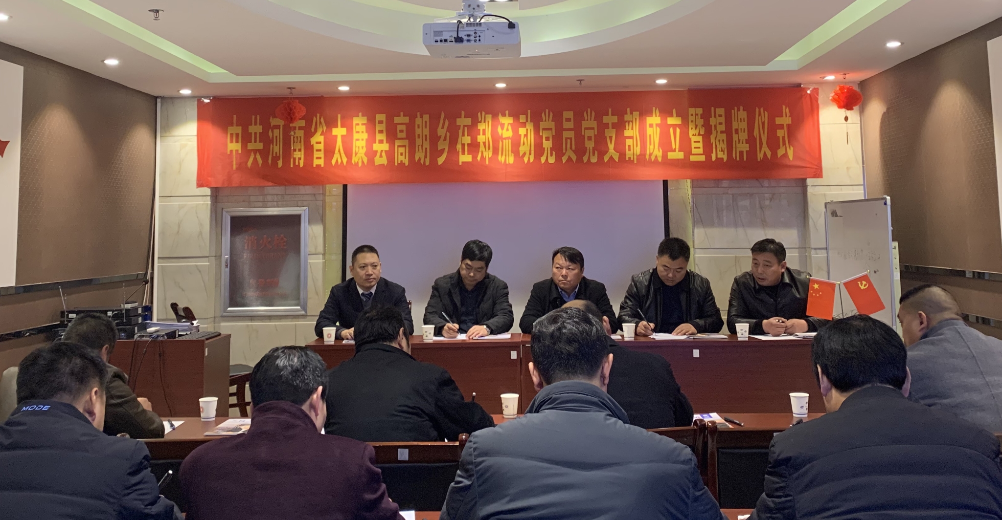 2020年元月5日,中共河南省太康县高朗乡在郑流动党员党支部成立会议在郑州市金年会娱乐官网首页会议室隆重召开;高朗乡党委书记王正刚,党委副书记朱凯,综治办主任张安领,财政所长庞在成,党建办主任郑涛及高朗籍在郑流动党员代表30余人参加了会议, 会议由张安领主持。